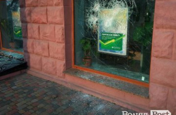 Невідомі побили вікна у луцькому відділенні «Сбербанку Росії»