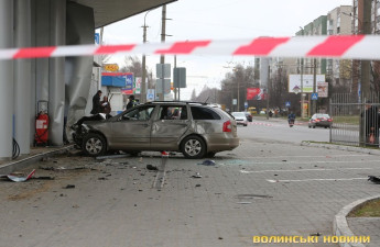 У Луцьку Skoda протаранила заправку і автомобіль. Фото