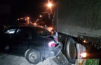 Дорожньо-транспортна пригода сталася у Луцьку, вечірньої пори 9 лютого, на вулиці Ковельській: вантажівка з турецькими номерами врізалася в автомобіль Daewoo Lanos, який винесло на зустрічну смугу і стукнуло в іншу машину.