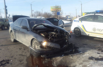 Водій легковика не впорався з керуванням на слизькій дорозі і вилетів на смугу зустрічного руху, де зіткнувся з поліцейським авто