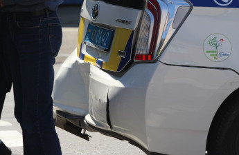 Водій позашляховика не помітив патрульних на службовому авто "Пріус", які чекали зеленого сигналу світлофора, в результаті чого відбулось зіткнення