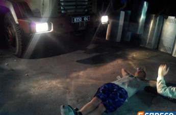 Біля будівлі Оболонського районного суду Києва, де розглядають справу бійців роти "Торнадо", активісти перешкоджають виїзду трьох КрАЗів Нацгвардії