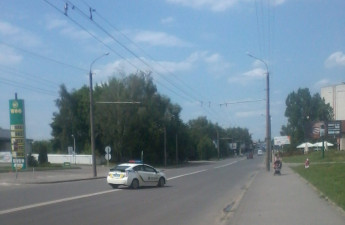 При виїзді з автозаправної станції WOG, що у Луцьку на вулиці Конякіна, о 15.35 сьогодні, 22 червня, автомобіль поліції свідомо порушив Правила дорожнього руху