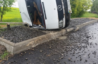 Водій буса Mercedes Sprinter не справився з керуванням на слизькій дорозі. Як наслідок, автівка перекинулась.