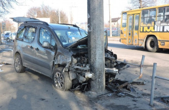 9 лютого близько 14.00 на вулиці Львівській у Луцьку відбулася страшна аварія. Місце зіткнення «Сітроена Берлінго» з електроопором відгородили від проїжджої частини два екіпажі поліції. ДТП трапилося якраз напроти автостанції №2. Люди, які очікували маршрутки, а також випадкові перехожі зібралися біля розтрощеної машини