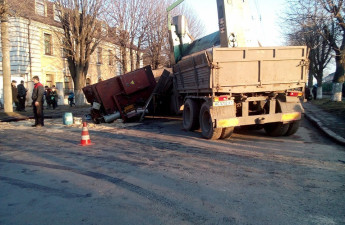 Дорожньо-транспортна пригода у Луцьку на вулиці Дубнівській трапилася близько 17.00. Водій КамАЗу, здійснюючи маневр на дорозі, очевидно, розвороту, спричинив аварію