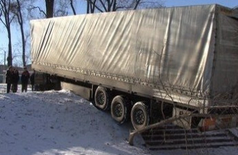Вантажівка причепом застрягла у кюветі. ФОТО