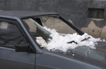 У Луцьку - чергова жертва "сходження лавин": учора, 20 лютого в центрі Луцька снігова брила впала на дах легкового автомобіля Лада Самара, потрощила лобове скло та погнула дах