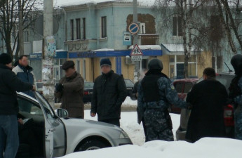 В Луцке на улице Ковельской вблизи гипермаркета «Пакко» двое бойцов спецподразделения «Беркут» в бронежилетах и маске задержали мужчину, который управлял автомобилем «КИА». На месте работают следователи правоохранительных органов