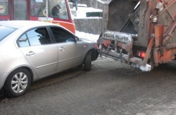 Під сходами мерії іномарка таранила сміттєвоз. ФОТО