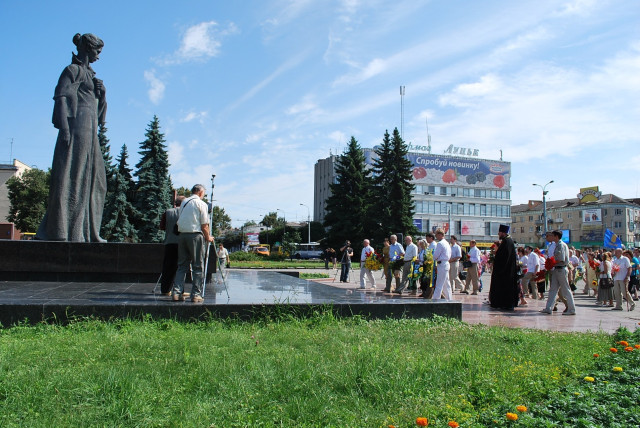 На Театральному майдані у Луцьку, біля пам’ятника письменниці, зібралися представники влади, політичних партій, науковці, громадськість.