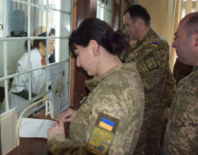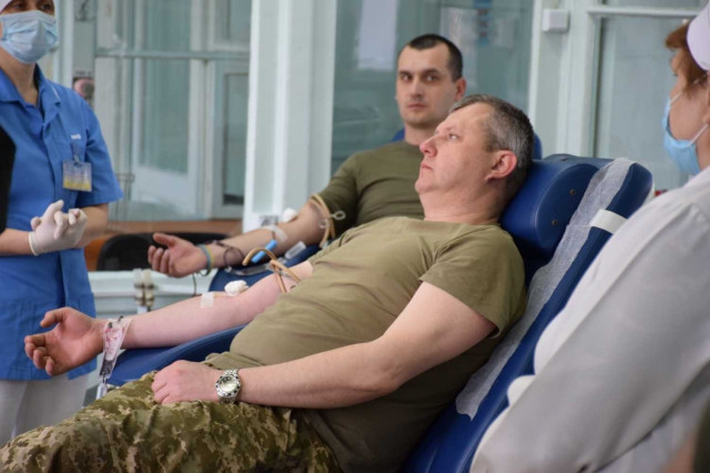 З метою надання всебічної медичної допомоги дітям, що через військові дії на cході нашої держави не можуть отримати кваліфіковану медичну допомогу, понад 50 військовослужбовців управління оперативного командування «Захід» взяли участь у благодійному проекті зі здачі крові для хворих дітей із зони проведення антитерористичної операції.