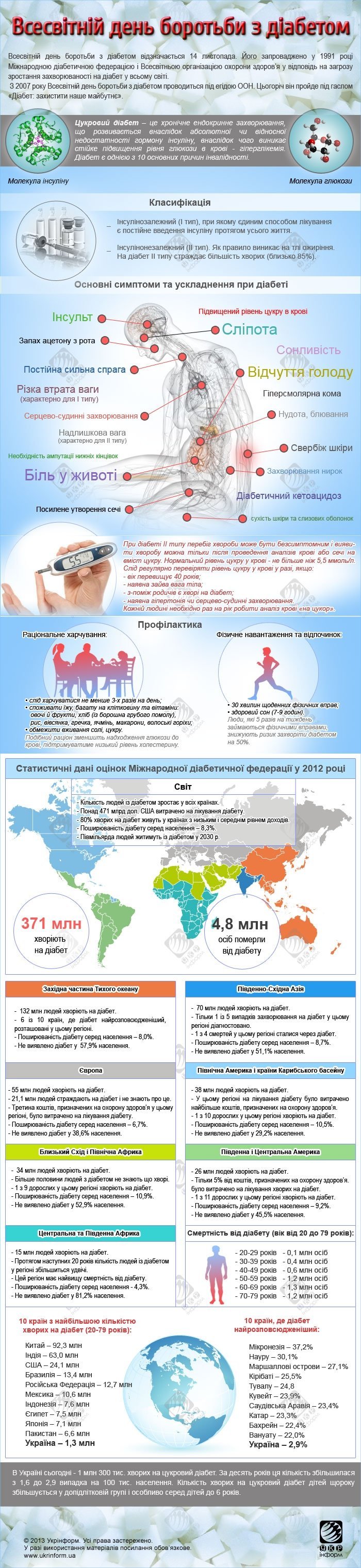 Згідно з даними за 2012 рік, 371 мільйон людей на планеті страждають від різних форм діабету. Тільки торік діабет забрав життя 4,8 мільйонів чоловік.