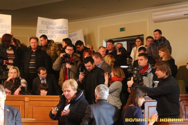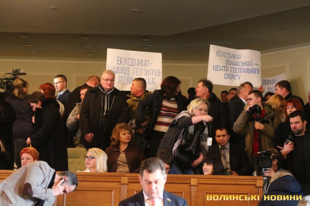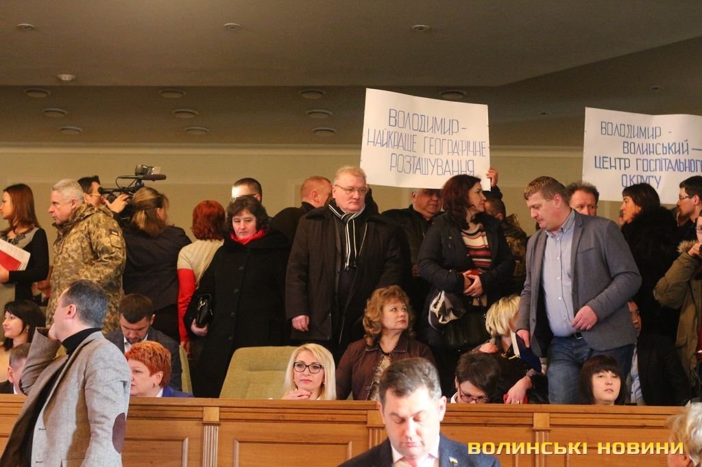 Декілька груп мітингувальників прибули на сесію Волинської облради. Серед іншого, волиняни просять створити госпітальний округ у Володимирі-Волинському та вимагають зупинити розкрадання землі.