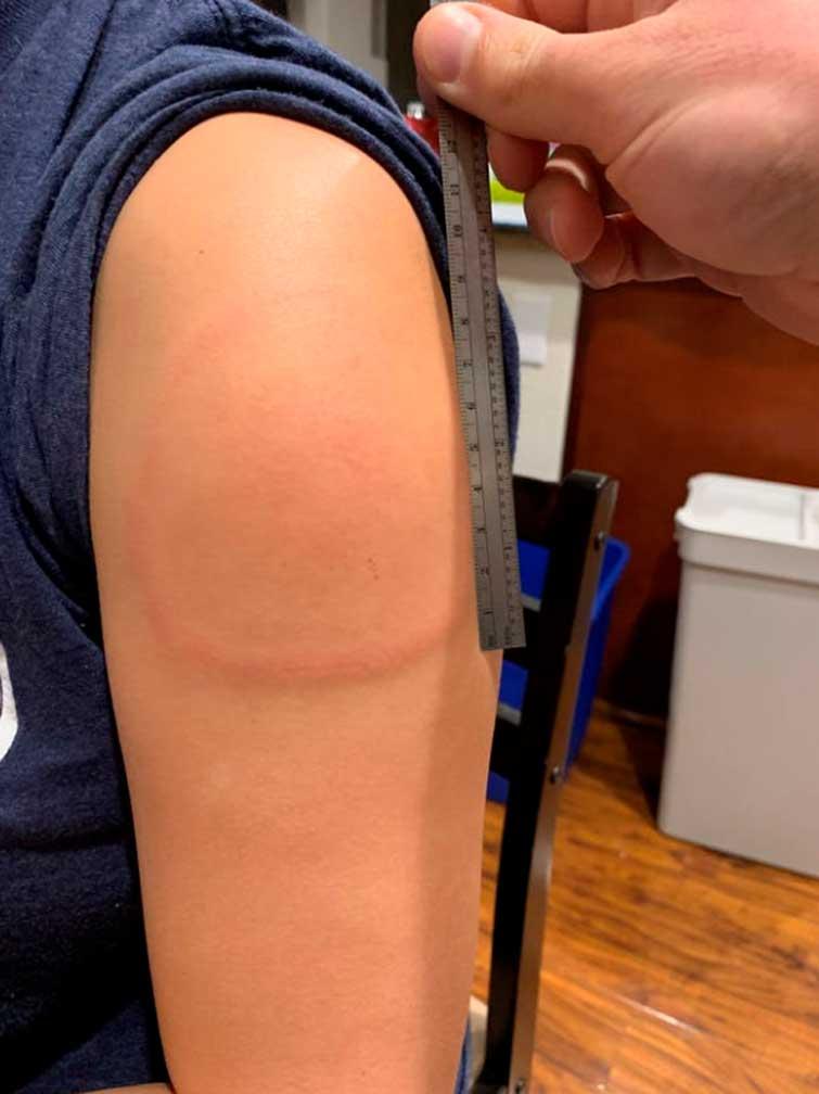 Ефект «ковідної руки» – це червона пляма, що з’являється навколо місця ін’єкції після щеплення від COVID-19. Пляма може досягати 12-15 см в діаметрі і може боліти.