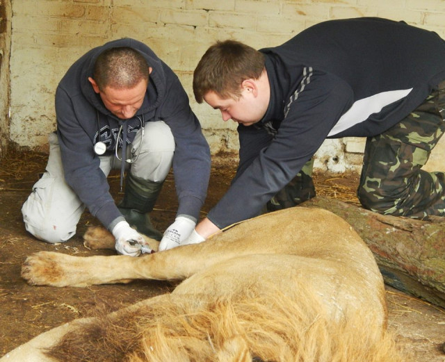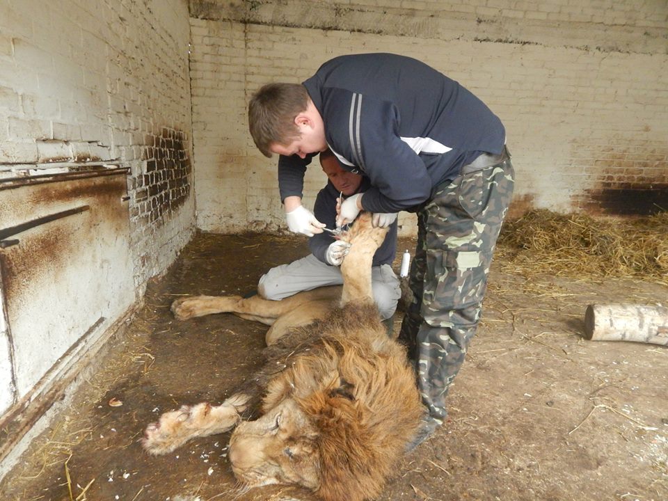 Щоби провести необхідні медичні процедури, Ніка спочатку знерухомили. Анестезію вводили поступово у кілька етапів за допомогою спеціальної трубки. За тим левові підрізали кігті.