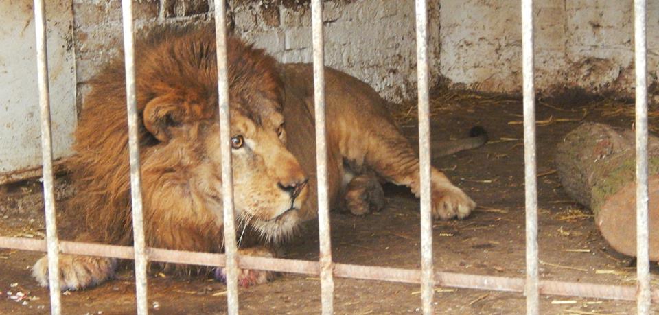які занедбані леви! жах...бідні тварини...все життя в неволі, ще й такій бридкій, за занюханою кліткою...