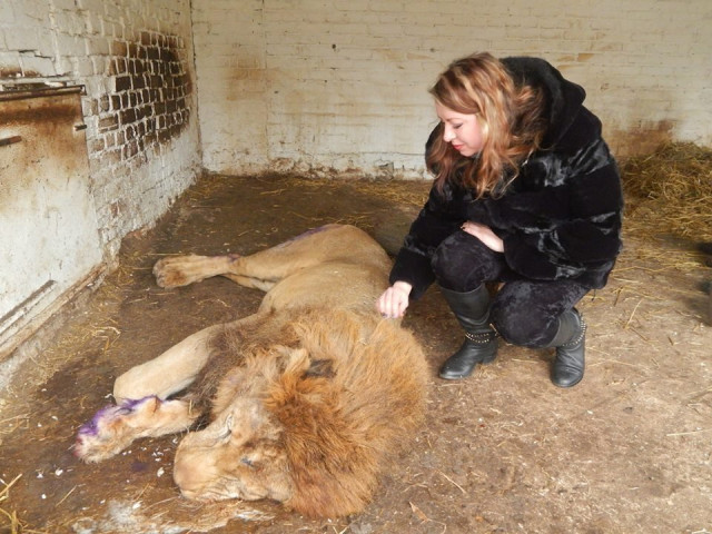 Весь час, поки ветеринари займалися Ніком, левиця Даша, що мешкає у сусідньому вольєрі, переживала за нього – стояла біля дверцят й тихенько ревла.