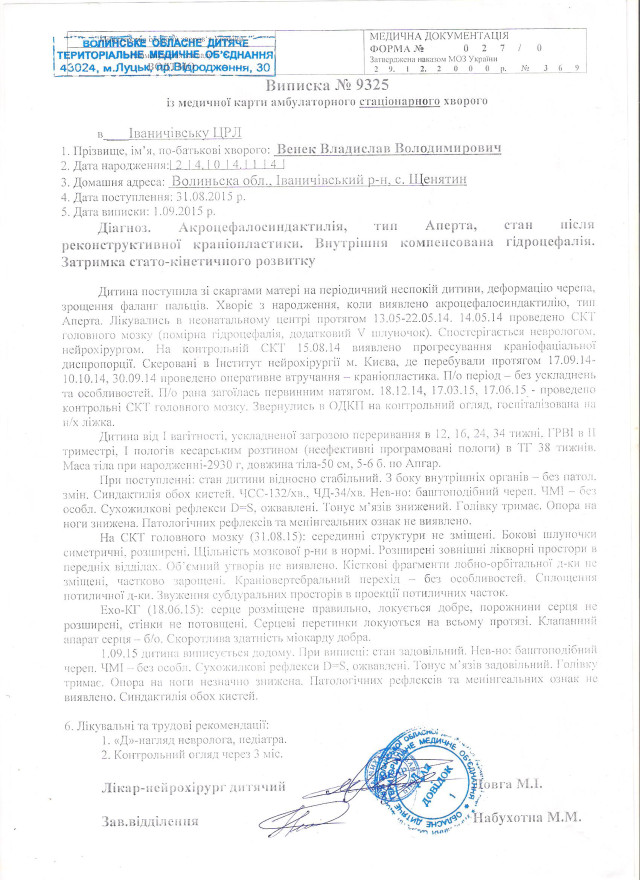 Владиславу після народження поставили страшний діагноз: Акроцефалосиндактилія, тип Аперта та гідроцефалія.