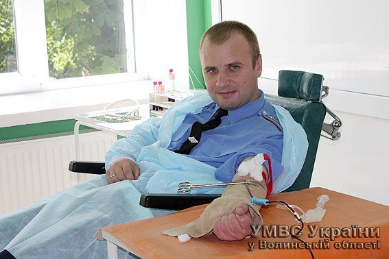 - Благодійну акцію зі збору донорської крові ми приурочили Дню захисту дітей, щоби допомогти малюкам подолати тяжкий недуг. Тому до Волинської обласної станції переливання крові здавати кров прибули «дитячі міліціонери» та дільничні інспектори міліції луцького райвідділу міліції. Поділившись власною кров’ю, ми врятуємо не одне дитяче життя.