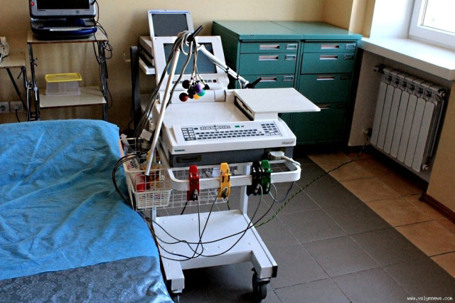 У кабінеті працює сучасний електрокардіограф, на якому можна робити кардіограму з автоматичним визначенням показників.