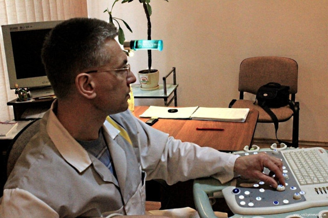 «За результатами одного обстеження діагноз не ставиться. Робиться лише заключення. Тобто, описується структура серця: стан м`язу, клапани, аорти серця. Перевіряється, наскільки м`яз та клапани функціонально здатні. Потім на основі цього обстеження та електрокардіограми лікар-кардіолог виставляє клінічний діагноз», - ділиться досвідом лікар кабінету ехокардіоскопії Микола Литвин.
