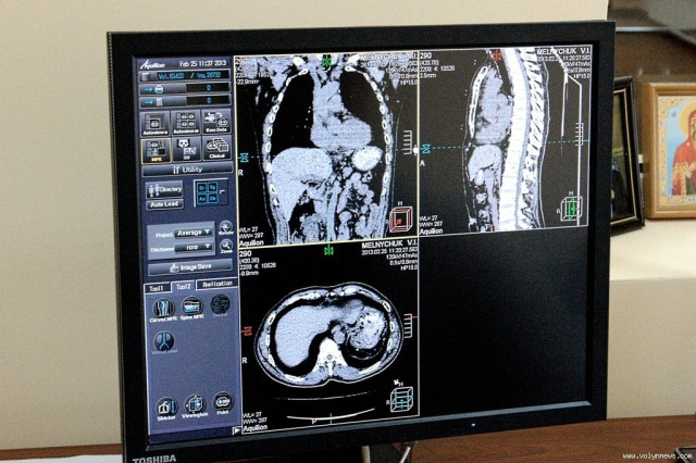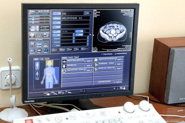 Важливе значення у проведенні діагностики серцево-судинних захворювань має комп’ютерна томографія. Хворого обстежують на сучасному томографі «Aquillion 6 Toshiba» (апарат робить 16 сканів за 1 поворот труби).