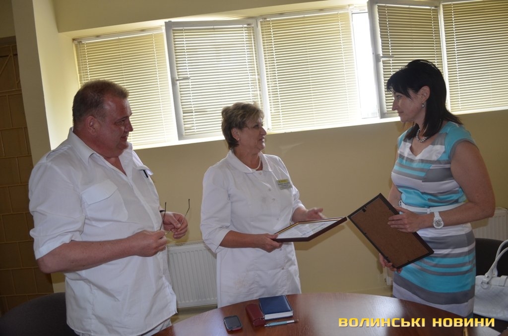 Сертифікат на суму 146 тисяч гривень для ремонту хірургічного відділення заступник голови правління благодійного фонду Ірина Констанкевич передала заступнику генерального директора по медичній частині Волинського обласного дитячого територіального медичного об’єднання Людмилі Гагаловській.