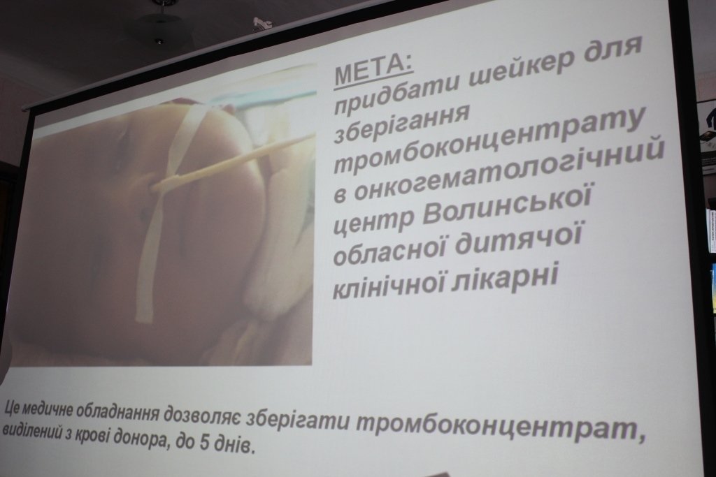 Марія Адамчук розповіла, що шейкер необхідний для того, щоб вирішити проблему зберігання тромбоконцентрату. А встановити пристрій планують в Онкогематологічному центрі обласної дитячої клінічної лікарні.