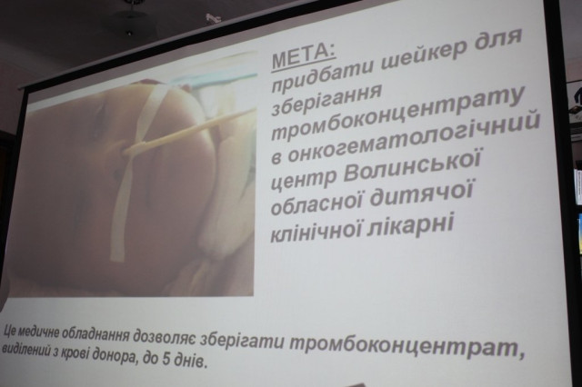 У клініці є сепаратор крові, що виготовляє необхідні для лікування тромбоцити, проте існує проблема збереження тромбоцитів. Придбаний шейкер дозволить брати декілька порцій тромбоконцентрату та зберігати їх протягом п’яти діб.
