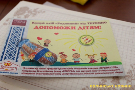 На Волині стартував проект «10 копійок на добро», завдяки якому кожен покупець хліба «Родинний» від ПАТ «ТЕРЕМНО ХЛІБ» буде особисто допомагати одужувати дітям із онкогематологічними захворюваннями.