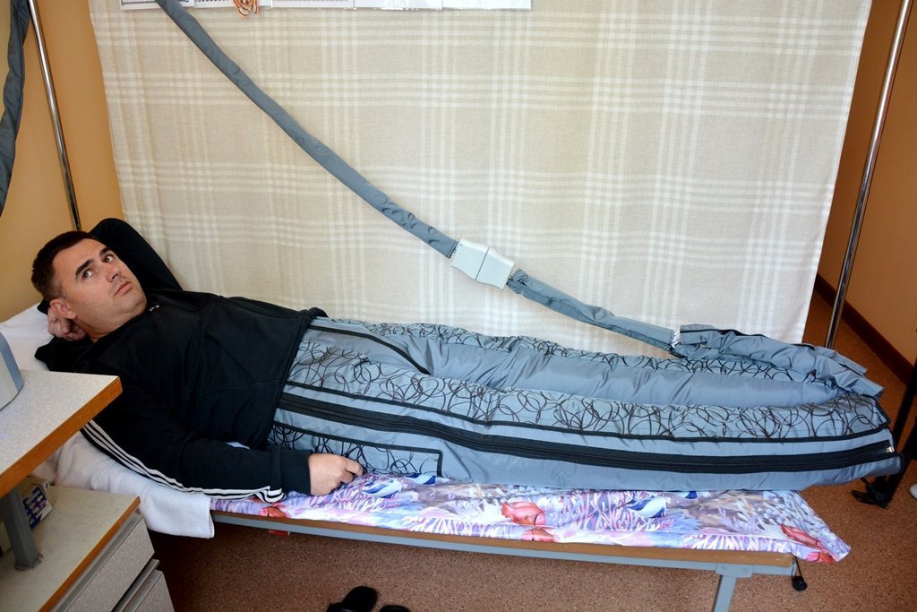 Лімфопресотерапія – це особливий вид масажу тіла, який поліпшує кровообіг у кінцівках та допомагає відновлюватися після навантажень. У деяких бійців багато осколкових поранень, тому терапія повинна бути дуже обережною.