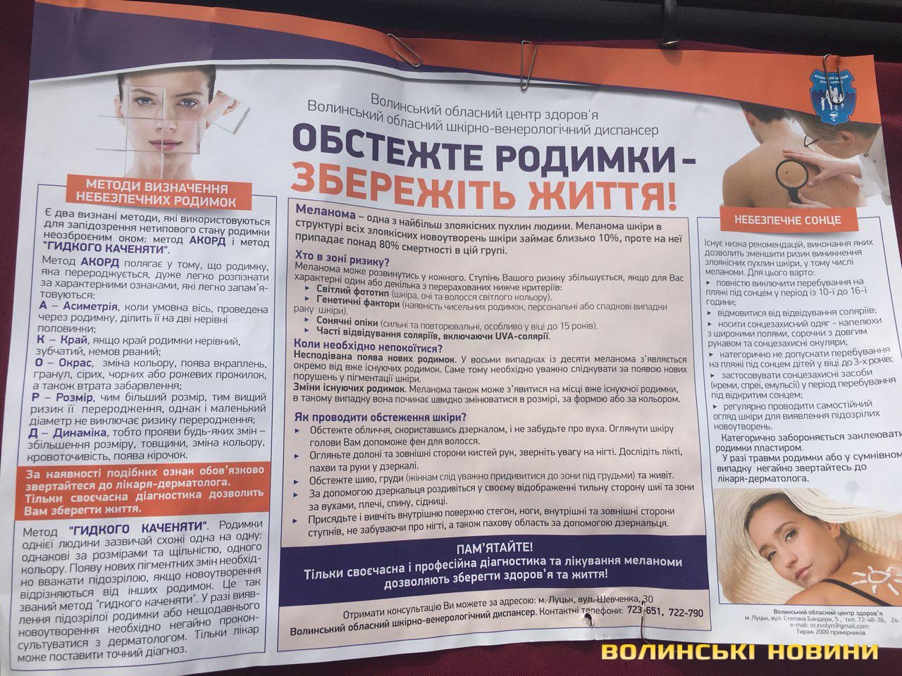 Усі охочі можуть пройти безкоштовне обстеження родимок у Луцьку.