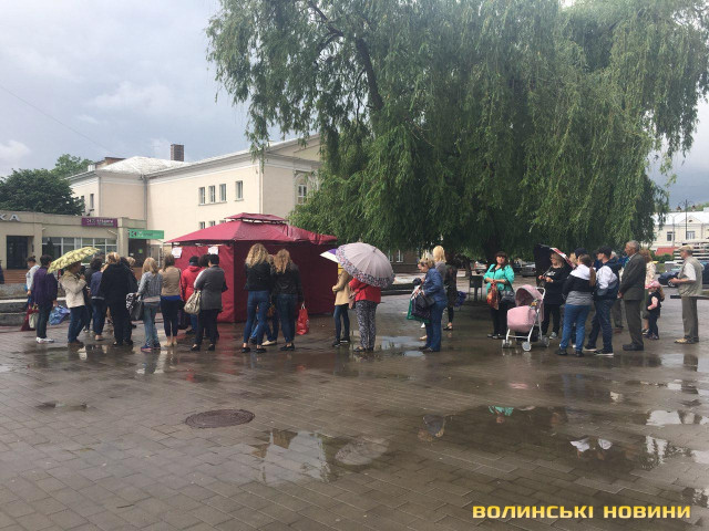 Станом на 12.10 охочі пройти обстеження, незважаючи на дощ, утворили цілу чергу.