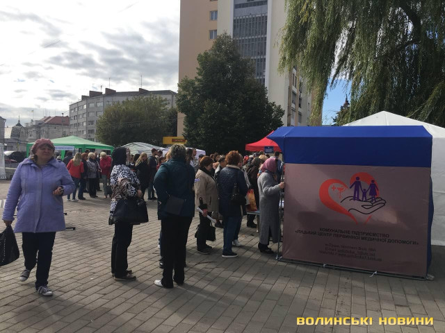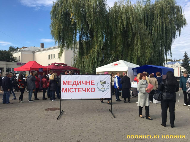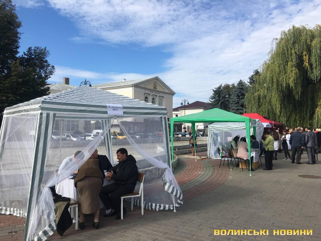 Головні медичні установи облаштували палатки Луцька на центральній площі міста з 10 ранку 28 вересня. Містечко діятиме до 14 години.