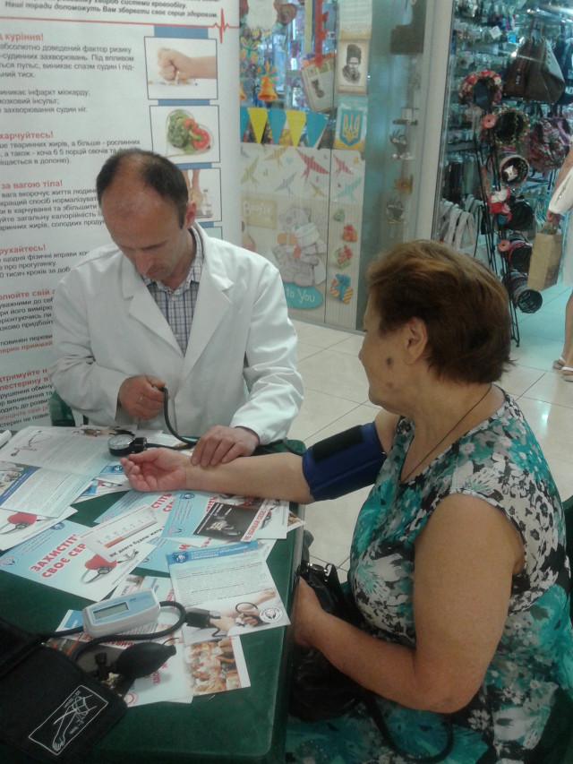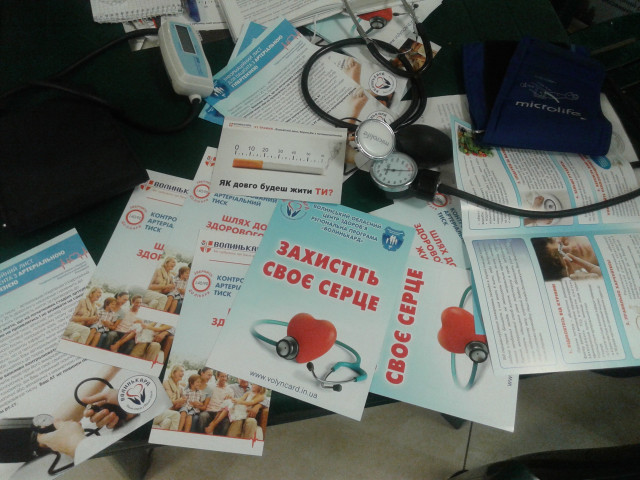 Серед відвідувачів розповсюджувались інформаційні буклети «Захистіть своє серце», «Контрольований артеріальний тиск – шлях до продовження Вашого життя», листівки проти тютюнопаління «Не вбивай себе», «Інформаційний лист для пацієнта з артеріальною гіпертензією».Одночасно з процедурою вимірювання артеріального тиску проводилась роз’яснювальна робота щодо факторів серцево-судинного ризику та необхідності регулярного відвідування лікаря.