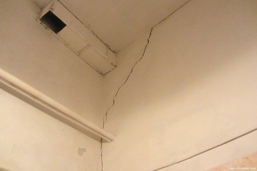 «В цьому році сталося так, що велика кількість талих вод спричинила аварійну ситуацію: перегородки душових роздягалень – тріщини там значні. Талі води просто спричинили просідання фундаменту, – зазначила директор школи.
