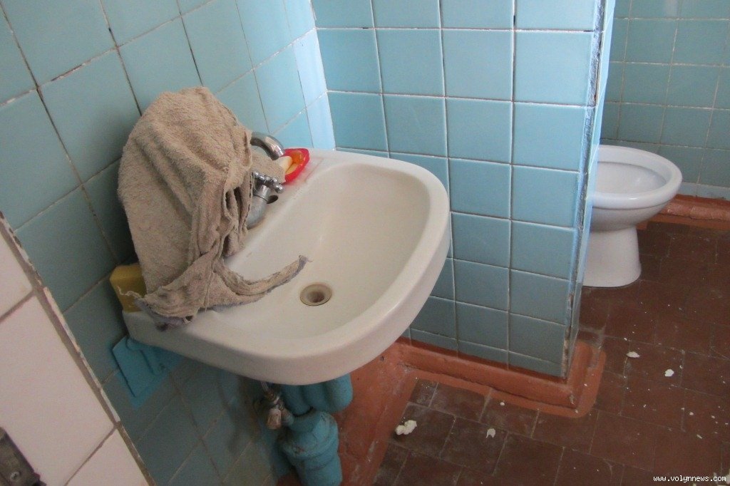 «І враховуючи, що витяжної вентиляції абсолютно нема, вся волога осідає на стіни. А та вся плитка, яка на стінах, вона частинами відвалюється», – каже Руслана Оксентюк.