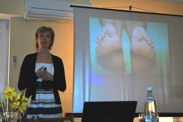 «Цукровий діабет страшний тим, що має агресивний перебіг, тобто, протягом життя у людини ураженої цією хворобою з’являються ускладнення. Одне з них – синдром діабетичної стопи. При неправильному догляді за нижніми кінцівками воно призводить до гангрени і ампутацій. Для нас дуже важливе відкриття цього кабінету. Там є педіатричне крісло для обробки тріщин п’яток, трофічних виразок та інших уражень. Є доплер, яким визначатимуть функцію судин – рівень їх ураження. Там також працюватиме лікар, який надаватиме поради щодо ортопедичного взуття» - повідомила Джанкарашвілі.