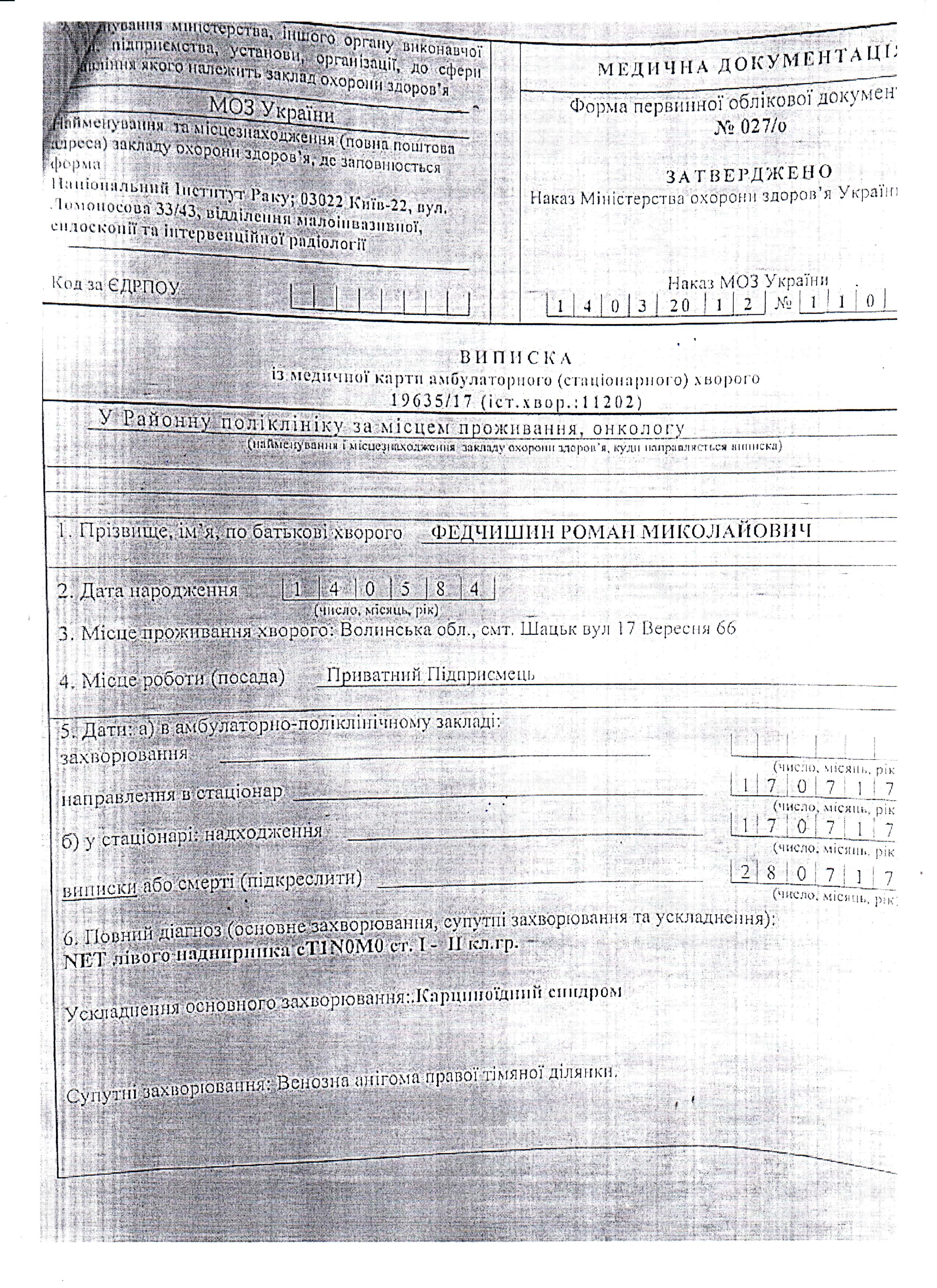 33-річному жителю Шацька Роману Федчишину медики встановили невтішний діагноз: аденома лівого наднирника.