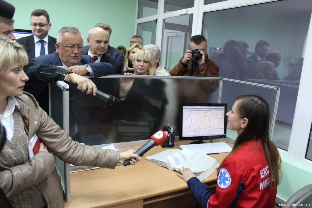 Перерізавши символічну червону стрічку, головний лікар Волинського обласного центру екстреної медичної допомоги та медицини катастроф Олег Куц продемонстрував приміщення сучасної центрально-оперативної диспетчерської.