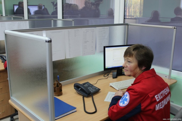 На другому поверсі облаштували зал на 9 робочих місць диспетчерів, кімнату старшого лікаря, навчальну кімнату, приміщення для іншого оперативного персоналу та адміністраторів. В приміщенні побудована структурована кабельна система, система відеоспостереження та система контролю доступу. На кожному робочому місці диспетчера встановлений комп’ютер, що дозволяє відслідковувати місце перебування бригад. Крім того, диспетчерську обладнали радіозв’язком з довжиною хвилі 41,8 мГц, який забезпечує зв'язок з 15 бригадами трьох відділень Центру. Загалом на ці цілі з обласного бюджету виділили ще 511 тисяч гривень. Наразі, в ЦОД працюють п’ять диспетчерів, які приймають дзвінки за номером 103 з Луцька, Луцького та Рожищенського районів, а з листопада прийматимуть виклики і з Локачинського району. Ще один працівник відслідковує рух бригад по решті території області.