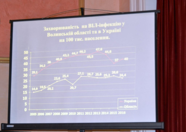 З нагоди 25-річчя діяльності центру в Палаці культури міста Луцька відбулися урочистості. Головний лікар закладу Олена Макаренко розповіла присутнім про діяльність закладу та ситуацію з ВІЛ-інфекції у Волинській області. Так, зі слів головного лікаря станом на 1 січня в області виявлено майже 5 тисяч ВІЛ-інфікованих осіб, з них в області проживає 2330 людини. Під медичним наглядом перебуває 2047 інфікованих. Серед них 37 дітей і 7 підлітків.«Це захворювання, на превеликий жаль, нікуди не дівається. Ми живемо в просторі де є ВІЛ-інфекція. Нам потрібно навчитися з нею місцями дружити, де воювати, а інколи просто сприймати. Ми повинні вирішувати питання так, щоб це було якнайкраще для населення і для людей яких особисто торкнулася ВІЛ інфекція/ СНІД», – звернулася до підлеглих Олена Макаренко.Працівників центру привітали колеги з Луцька та інших міст, представники місцевої ради, партнери.