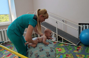 У Луцькій міській дитячій поліклініці осучаснили комплекс реабілітаційно-відновлювальних процедур. Зокрема, у кімнаті кінезотерапії є обладнання, на якому працюють діти з церебральним паралічем.