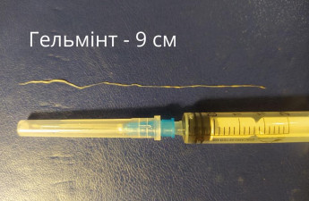 Днями до лікаря-офтальмолога у волинську лікарню звернулася пацієнтка з дивним утвором на повіці. Внаслідок хірургічних маніпуляцій було вилучено дирофілярій (гельмінт) довжиною 9 см.
