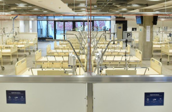 У Варшаві на Національному стадіоні відкрили тимчасовий госпіталь для хворих на коронавірус, щоб зменшити навантаження на лікарні у зв’язку з поширенням пандемії.