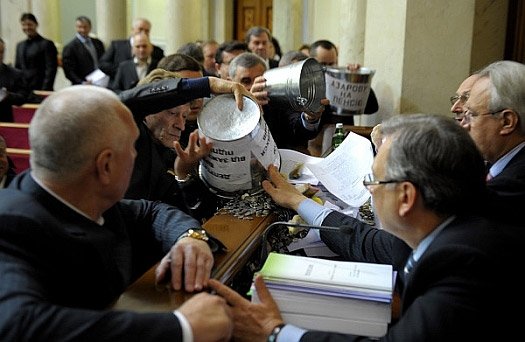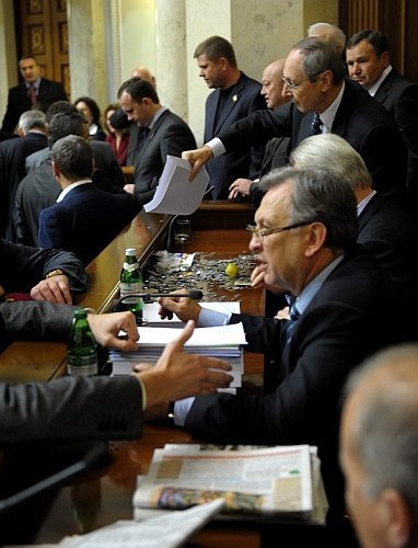 Депутати-БЮТівці Роман Забзалюк, Сергій Сас і Андрій Павловський висипали монети на урядову ложу, у якій сидів міністр фінансів. Ці монети депутати були зібрані напередодні підприємцями «на пенсію Азарову».