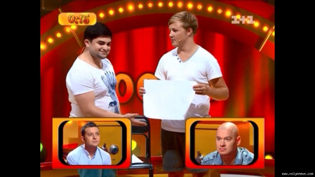 Змагаючись на першому рубежі, хлопці показали мініатюру про урок географії, дівчину в нічному клубі, та наочно продемонстрували хлопчика, у якого ламається голос під час бійки у дворі. Тисячу гривень, за п’ять секунд до закінчення першої хвилини, дуету приніс Діма Білан – точніше, сценка про відомого поп-виконавця.