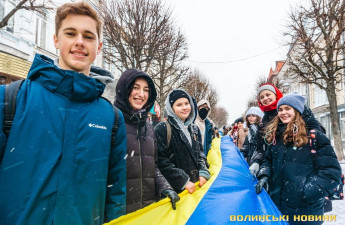 В обласному центрі Волині 22 січня до Дня Соборності України розгорнули 200-метровий прапор, створивши символічний «ланцюг єдності».