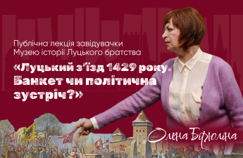 У межах літературної резиденції «Місто натхнення» в Луцьку відбудеться перша публічна лекція «Луцький з’їзд 1429 року. Банкет чи політична зустріч?», яку проведе завідувачка музею історії Луцького братства Олена Бірюліна.
